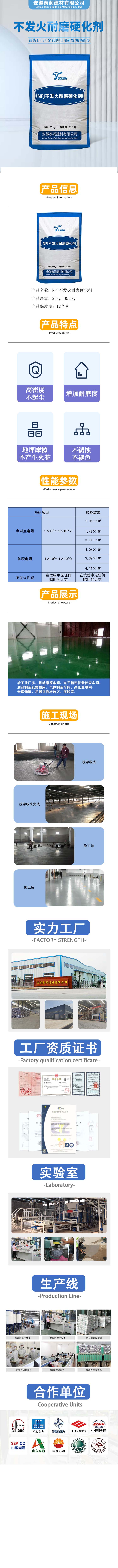 不發(fā)火耐磨硬化劑,是一種能經(jīng)受沖擊摩擦而不產(chǎn)生火花的特種材料,內(nèi)含耐高溫水泥、石灰石、白云石砂、及其他高分子聚合物混合而成,因其強(qiáng)度高、不發(fā)火等特點(diǎn),其可廣泛用于各種新建混凝土地面和舊混凝土地面的不發(fā)火處理。